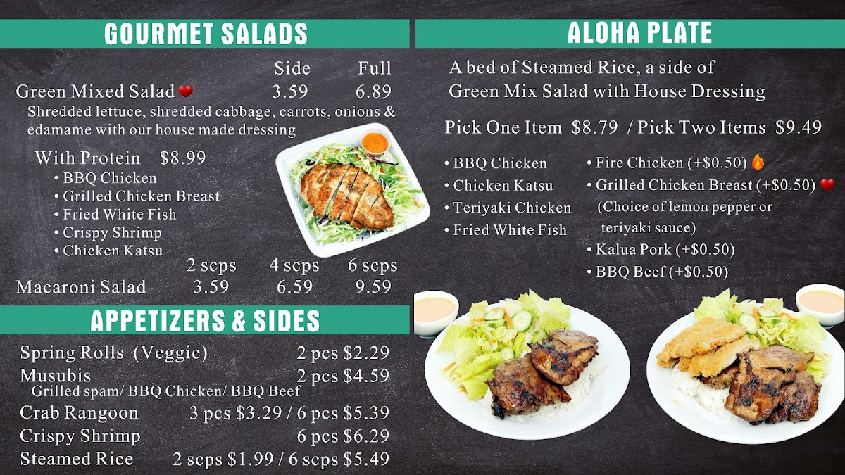 Shaka Hawaiian BBQ, located in The Colony, TX, offers an authentic taste of Hawaii with its vibrant menu. The appetizers, such as Veggie Spring Rolls and Crab Rangoon, are perfect for sharing, while the hearty Pork Plate Lunch features Kalua Pork served with steamed cabbage, embodying the flavors of slow-roasted, smoky goodness. For those seeking variety, the Mini Meal provides a balanced plate of rice, macaroni salad, and veggies.